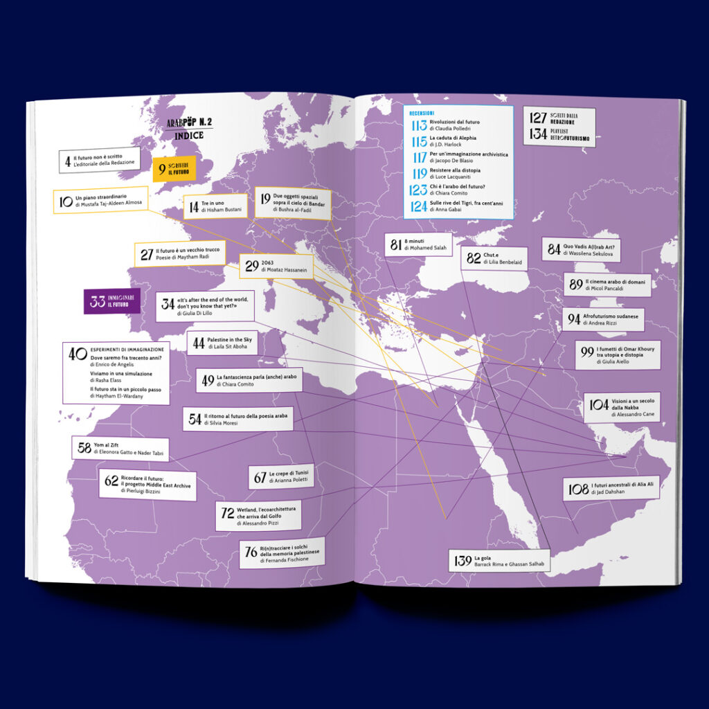 Da cupe distopie a folli utopismi, da futuri fantascientifici o metaforiche ricostruzioni a pratiche concrete di emancipazione dalle eredità del passato, il secondo numero di Arabpop, Futuro, racconta come l’arte e la cultura arabe articolano la tensione tra realtà apocalittiche e desiderio per il futuro attraverso nuove narrazioni in grado di trascinare l’umanità oltre un presente soffocante e alienante.
