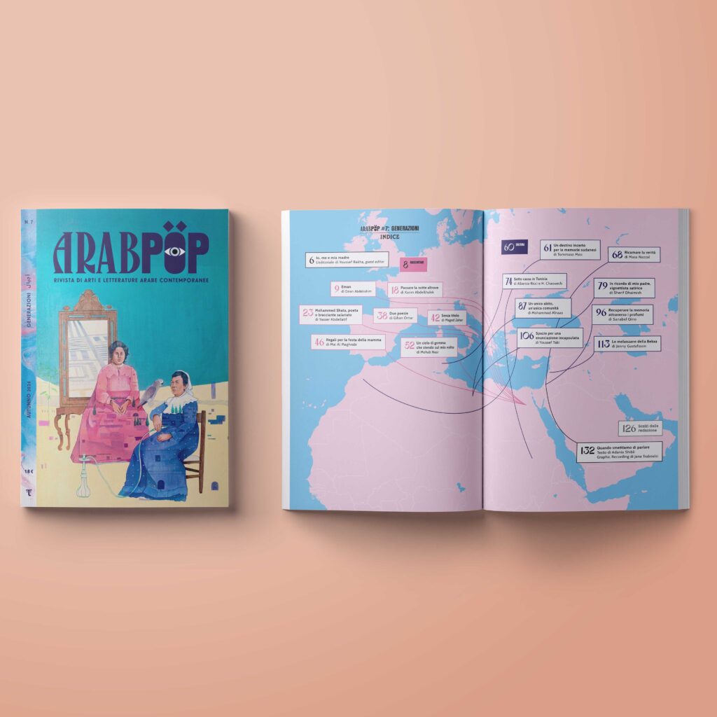 Questi sono alcuni degli argomenti che emergono dalle pagine di Arabpop n.7, dedicato al tema Generazioni, dove passato, presente e futuro di intrecciano attraverso il linguaggio della letteratura e delle pratiche artistiche.